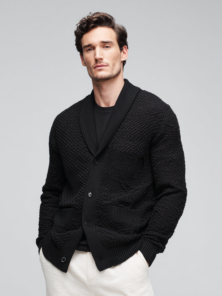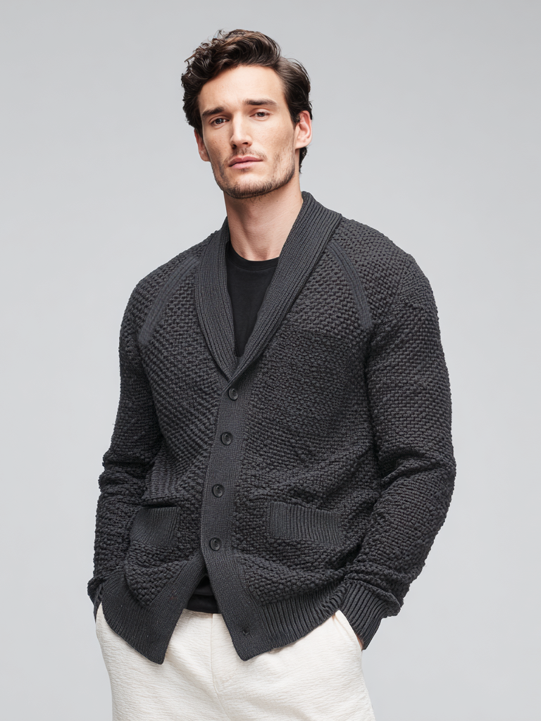 Casual men's knitted pocket coat