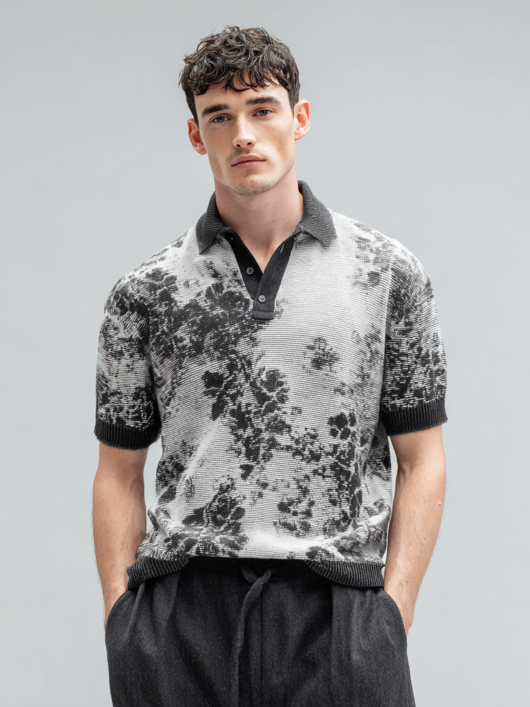 Men's casual abstract style printed polo