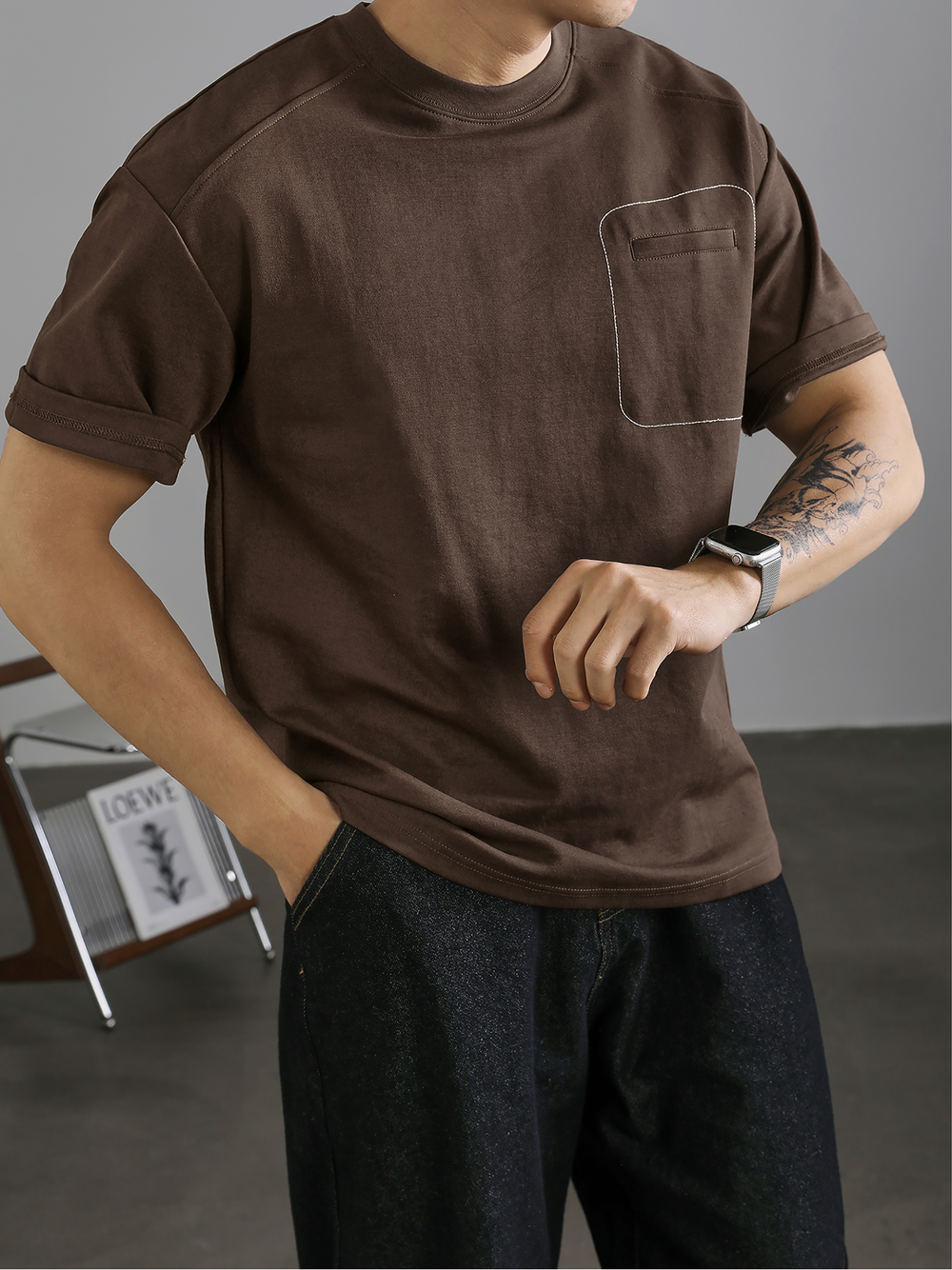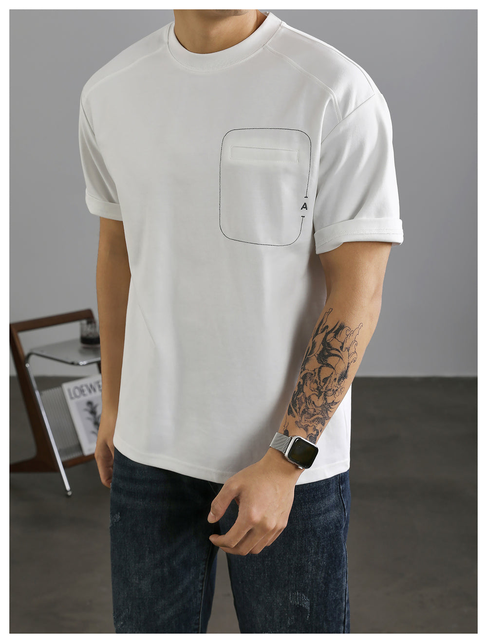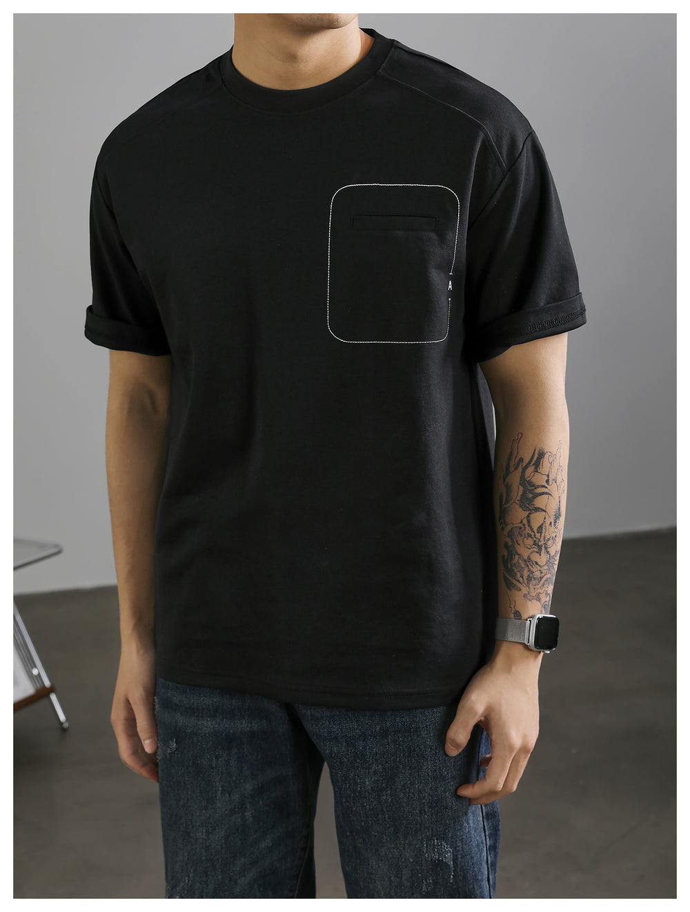 Men's casual fake pocket T-shirt with clear line design