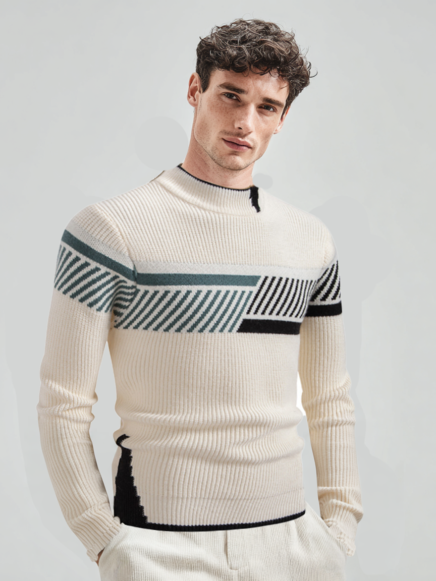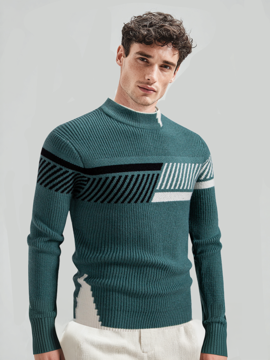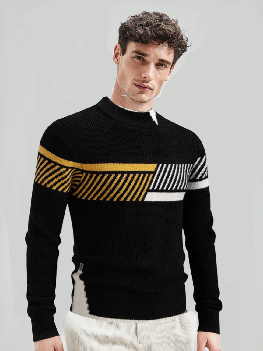 A comfortable and warm long-sleeved knitted sweater paired with a unique pattern