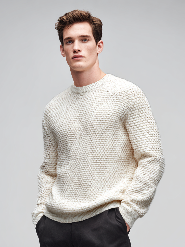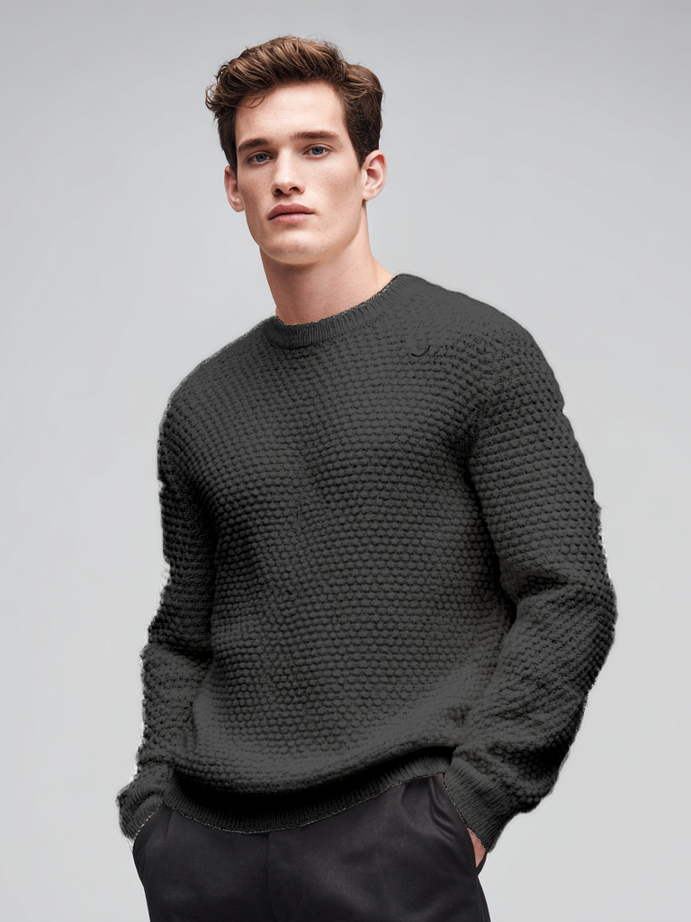 The comfortable round-neck knitted long-sleeved shirt is fashionable and warm