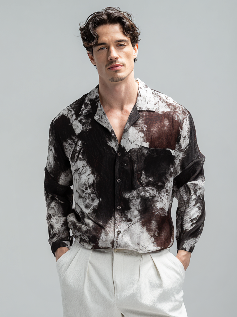 Men's casual linen tie-dyed printed shirt