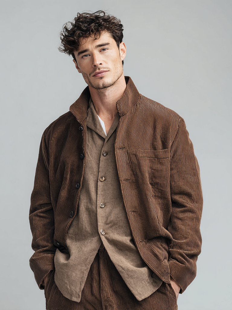 Men's corduroy lapel jacket