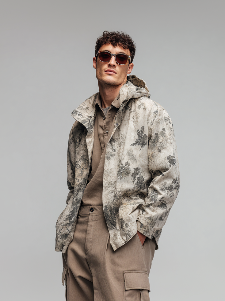 Unique and fashionable floral prints are paired with a stylish and convenient multi-functional hooded jacket