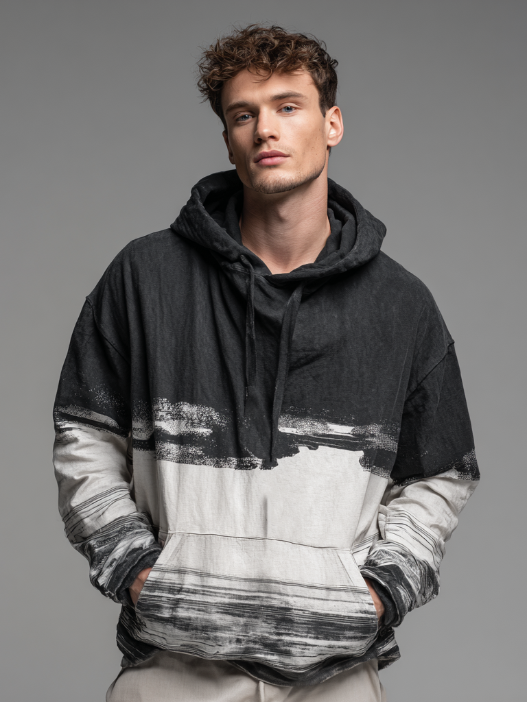 Men's pure cotton printed hooded sweatshirt