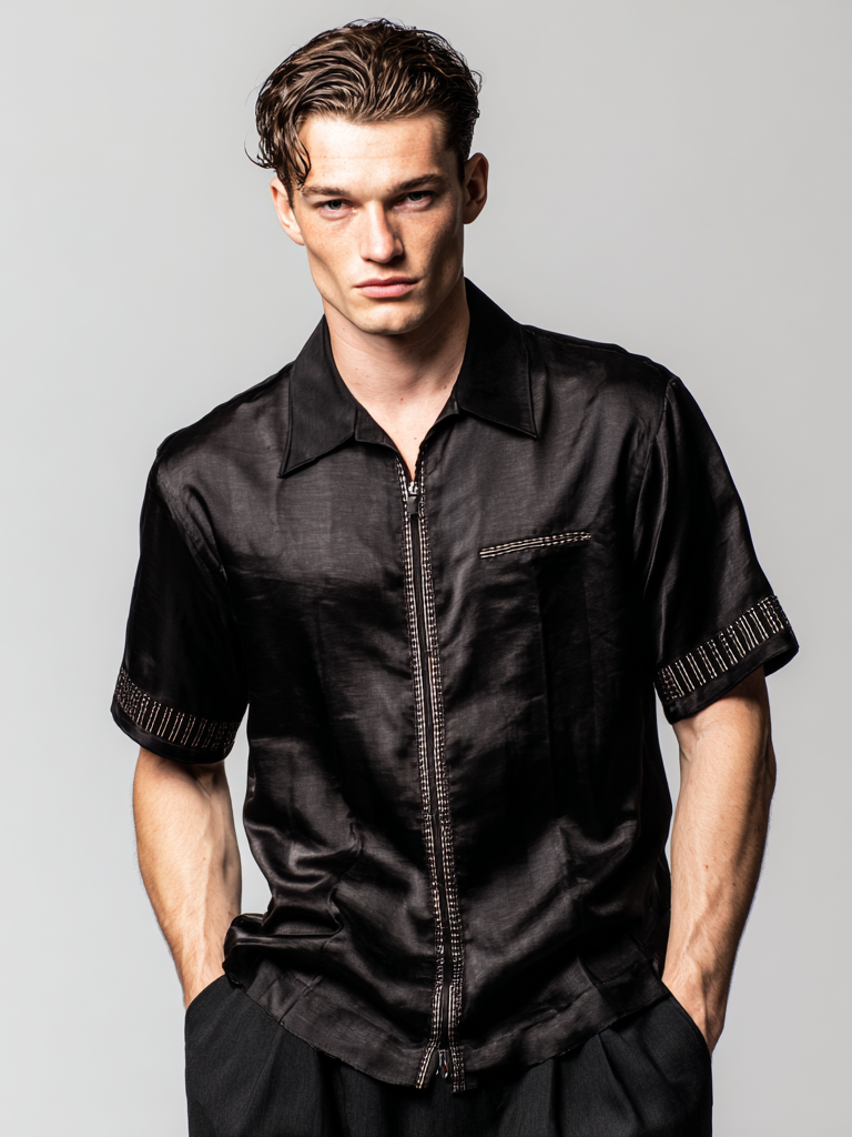 Men's silk short-sleeved shirt