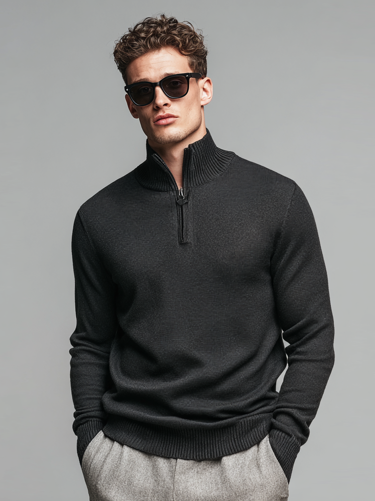 The comfortable and warm knitted fabric is paired with a fashionable stand-up collar design